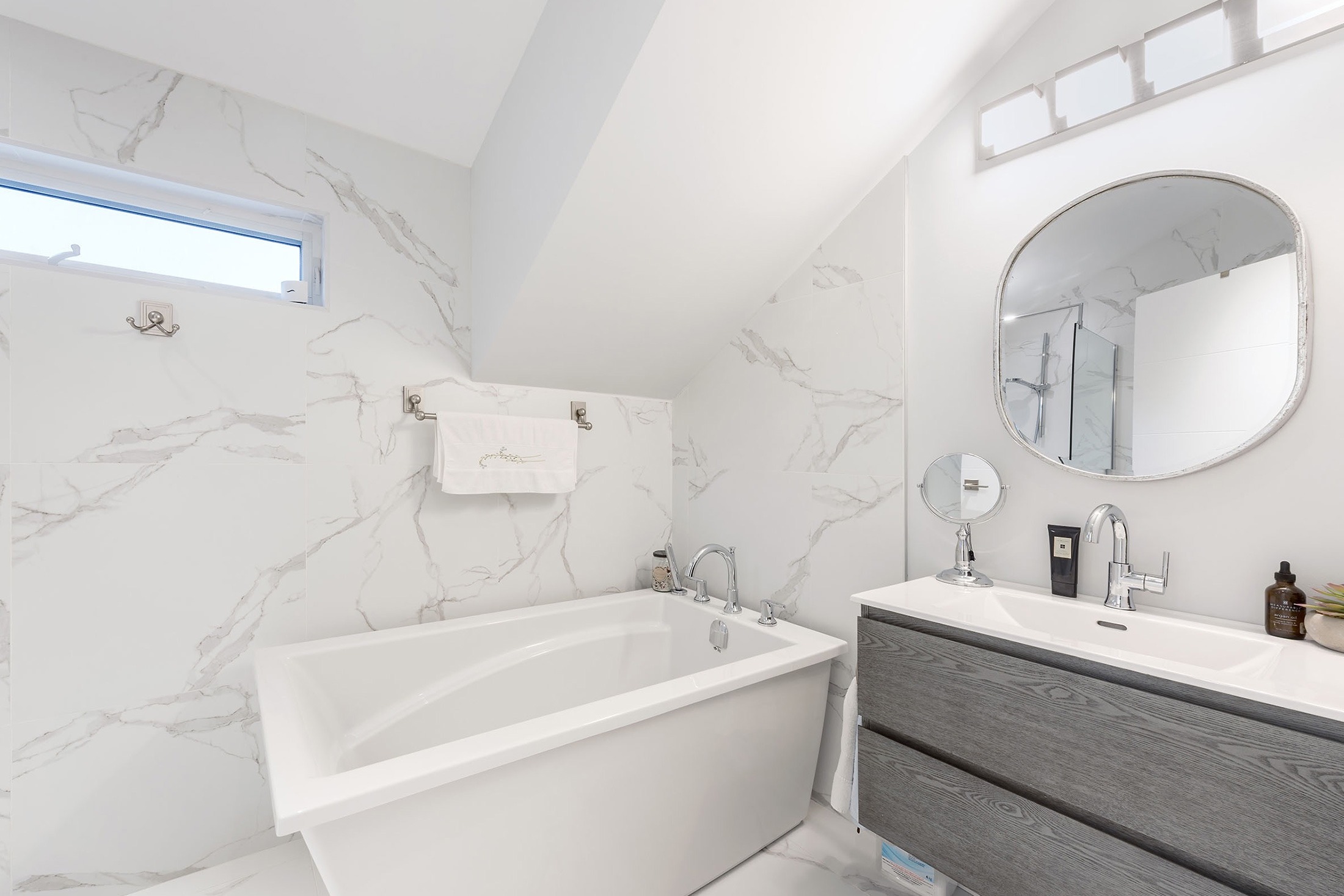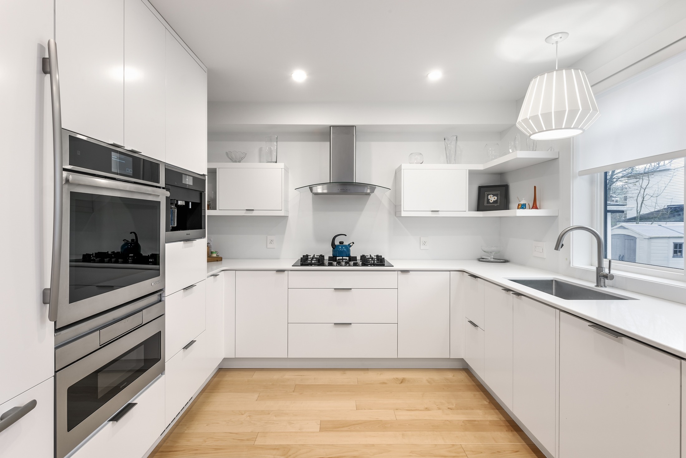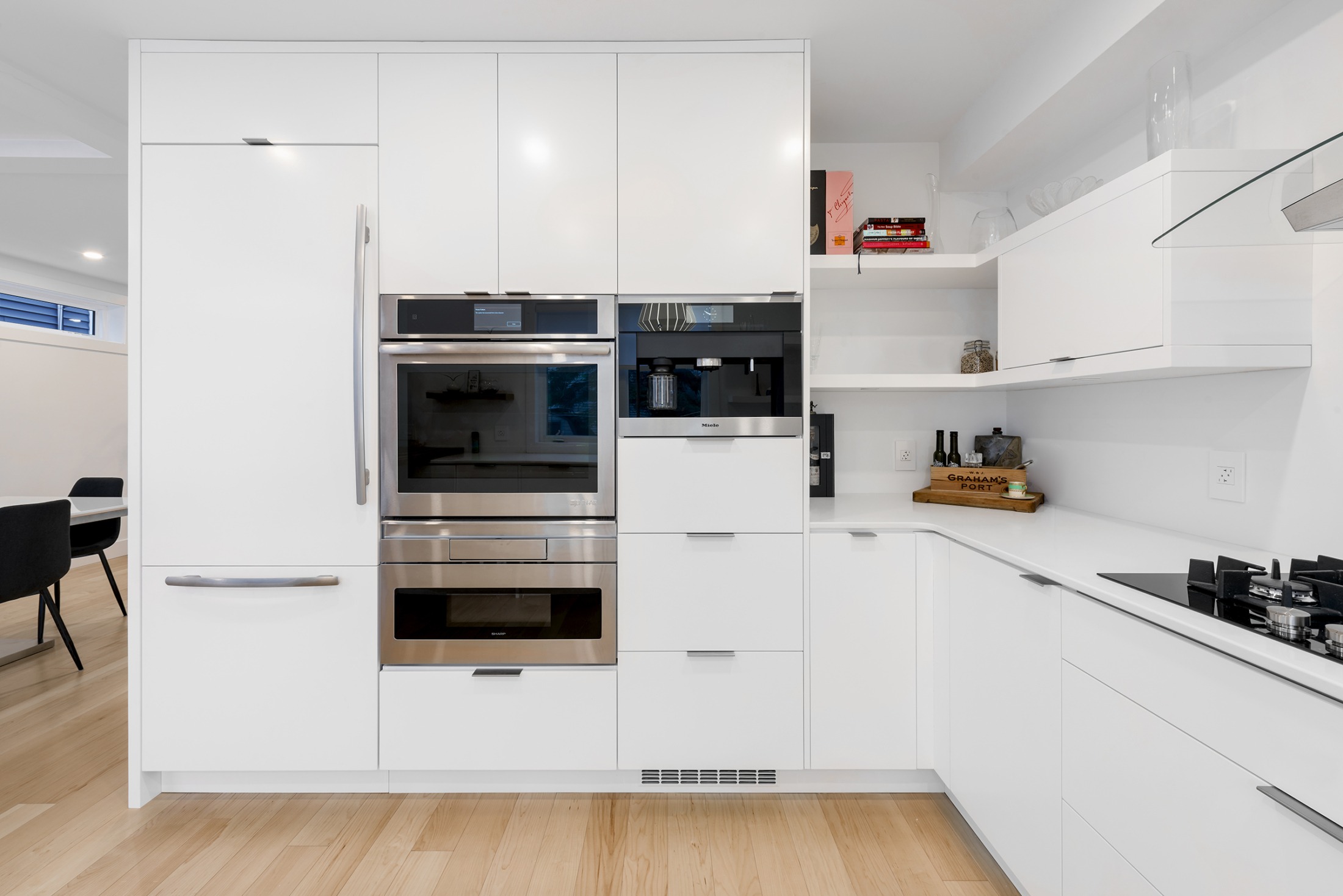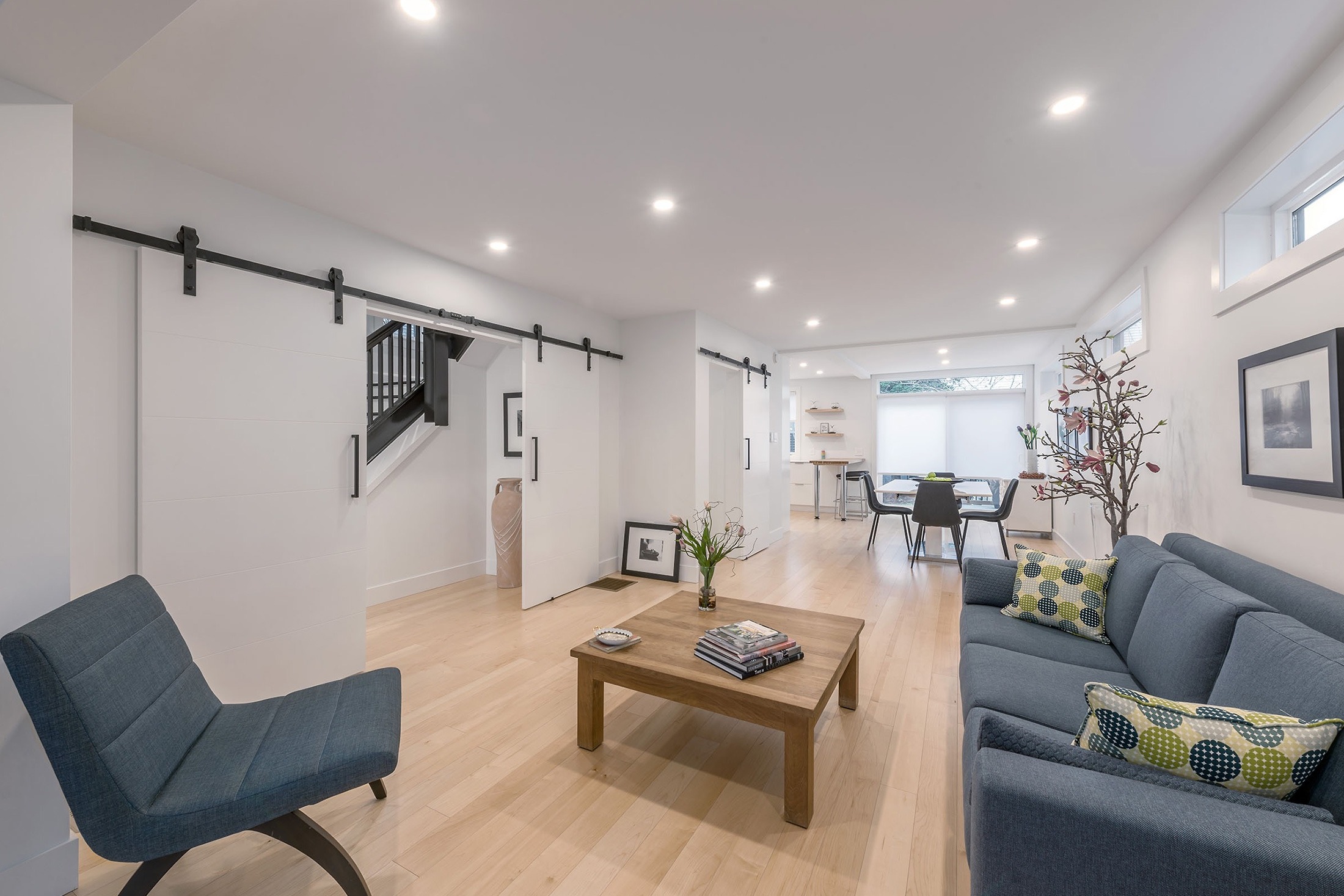 This is the second home we’ve rebuilt on Cabot Street. We’ll take that as a compliment, and chalk it up to the power of word of mouth and a solid recommendation! This was a complete strip and rebuild—giving the owners the blank slate they wanted. We jacked the house up by four feet to give them a finished, high-ceiling basement; built a modern Euro kitchen with a premium appliance package; and got them set up for a future (legal) in-law suite. We left this project with just one question: Is there a third Cabot home in Bruno’s future?