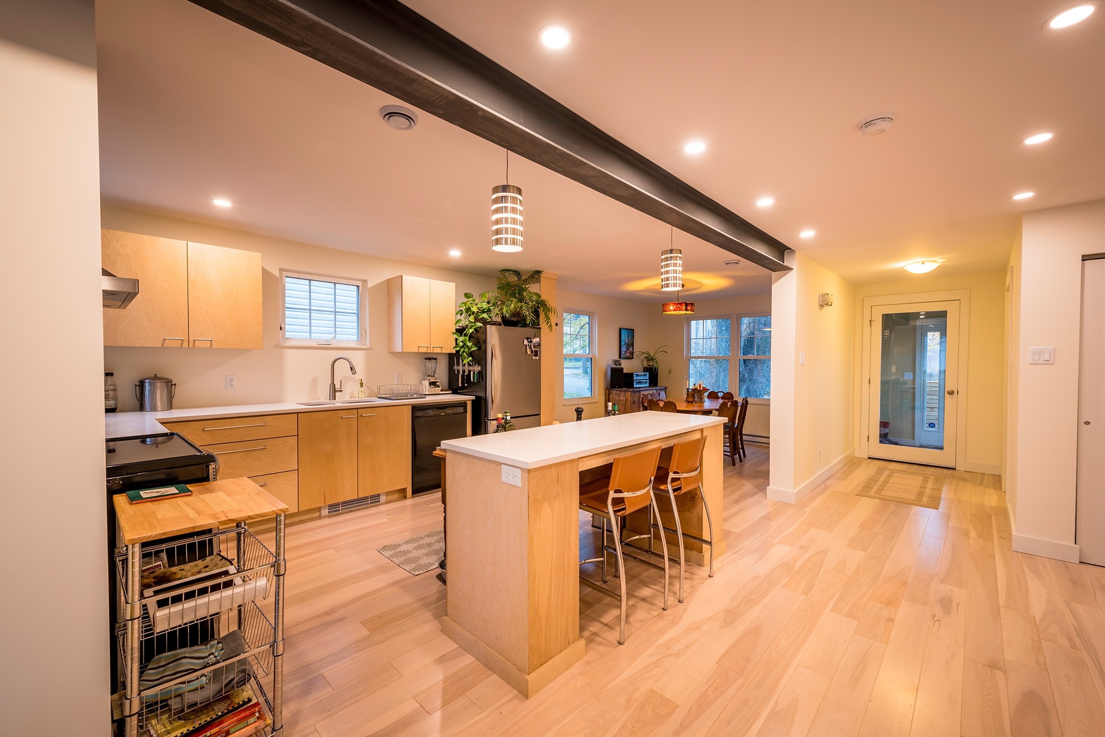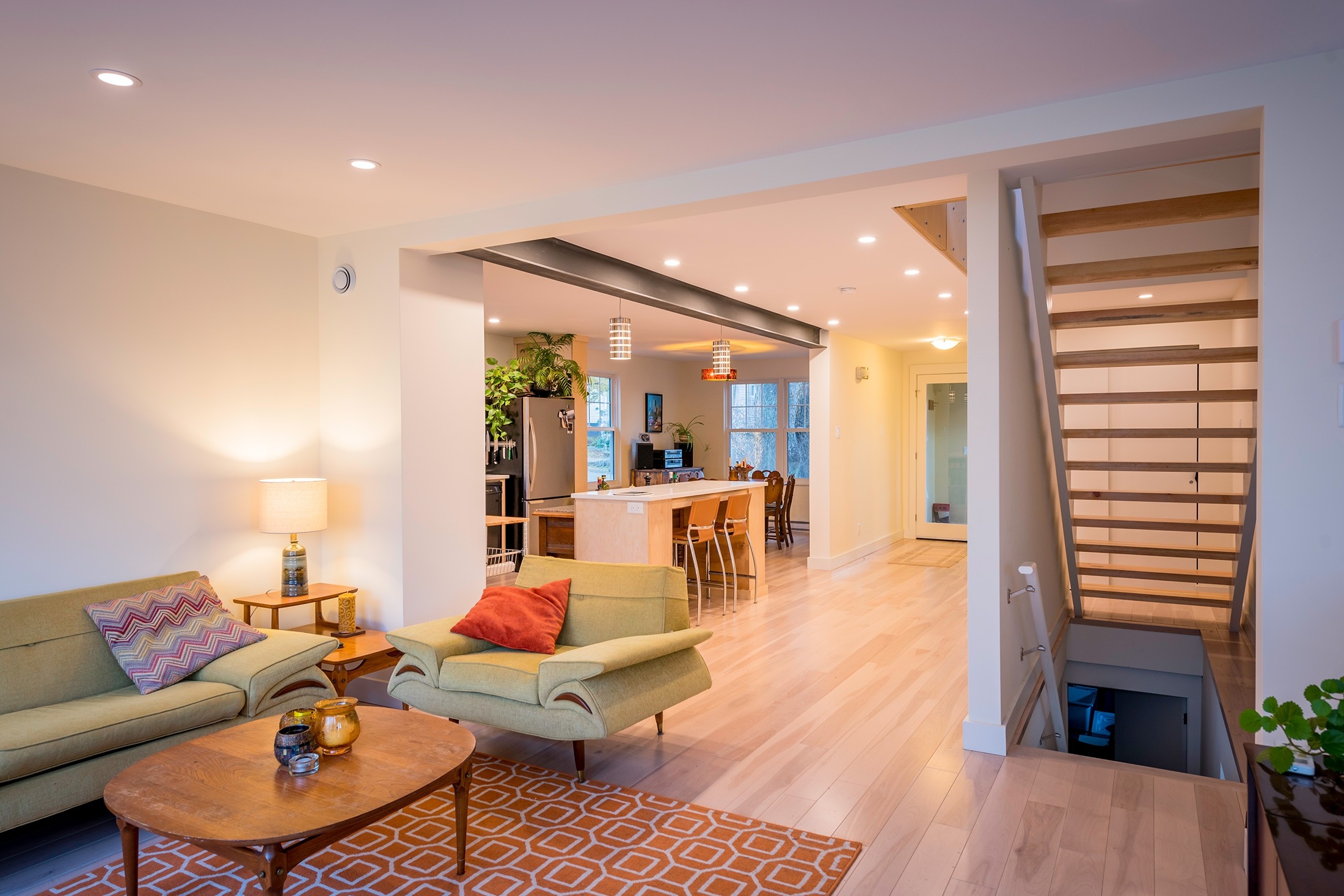 We spend too much time in our homes to put up with a space that doesn’t feel incredible. So that’s exactly what we created here, compliments of hands-on effort by our talented team of friendly trades. We salvaged what we could of the existing house—but it was a massive reno involving a modern new 20-foot addition. A custom, open-riser stair system and custom-milled exterior hemlock siding make this a stunning place for both the owners and their neighbours. Home sweet home, indeed.