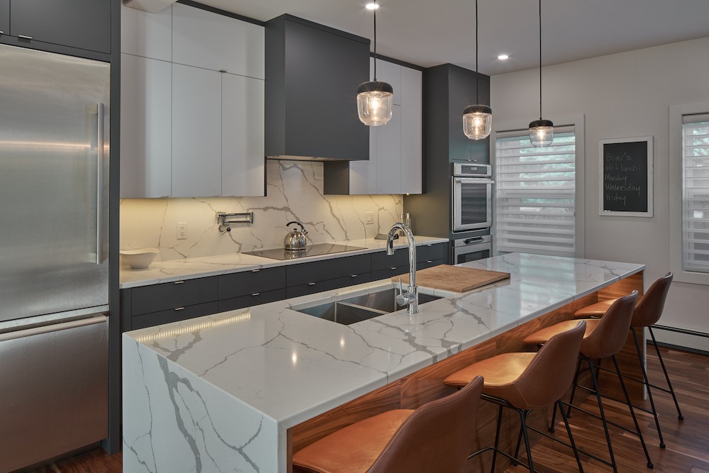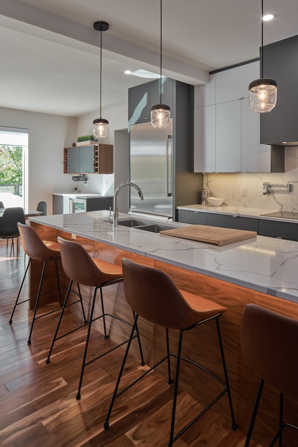 Like a little tailoring can take an outfit from good to great, a little renovation can take your home from “builder-grade” to “dream home”. Troy and Sue imagined that a more open-concept main floor—celebrating their beautiful lake views—would elevate their home. And they hoped that Bruno could make their dream a reality. And wouldn’t you know it? We did. A new open floor plan; facade and entrance; custom fireplace mantle; cabinetry and built-ins; waterfall island; cable stair railings; and yes, lake views. Troy’s and Sue’s home now fits them in the most flattering, confidence-boosting way.